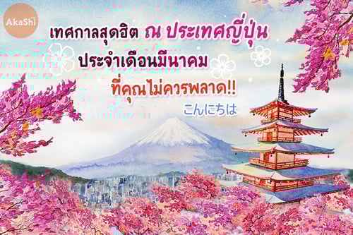 เดือนมีนาคม เป็นเดือนที่จะเริ่มเข้าสู่ฤดูใบไม้ผลิ หรือ ฤดูแห่งดอกไม้บาน ที่เต็มไปด้วยสีสันและความรื่นรมย์สำหรับการท่องเที่ยวญี่ปุ่น ดอกบ๊วยที่เริ่มบานมาตั้งแต่เดือนก่อนในบางพื้นที่ยังคงบานอยู่ในเดือนนี้ ดอกซากุระในโตเกียวก็เริ่มบาน สีชมพูสวยสดใส นับเป็นอีกเดือนหนึ่งที่คุณสามารถท่องเที่ยวญี่ปุ่นได้อย่างสนุกสนาน อากาศในเดือนนี้อุ่นขึ้นกว่าเดือนที่ผ่านมามาก แต่โดยภาพรวมในเดือนมีนาคมนี้ ยังคงเป็นฤดูหนาว แต่จะค่อยๆ ก้าวเข้าสู่ช่วงฤดูใบไม้ผลิตั้งแต่กลางเดือน สำหรับใครที่กำลังจะไปเที่ยวญี่ปุ่นในช่วงเดือนมีนาคม แล้วยังไม่ได้วางแผน วันนี้ร้าน AkaShi จะมาแนะนำเทศกาลสุดฮิตและประสบการณ์ที่ไม่ควรพลาดเมื่อไปเที่ยวญี่ปุ่นในช่วงเดือนมีนาคม จะได้ไปเที่ยวกันแบบสนุกสนาน แถมยังอินไปกับทริปญี่ปุ่นนี้ เสมือนเป็นคนญี่ปุ่น จนคุณไม่มีวันลืม