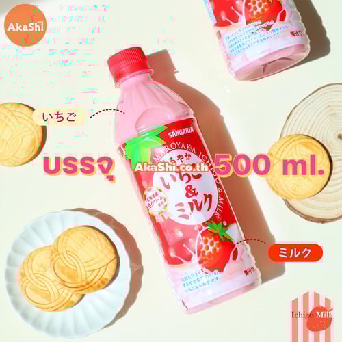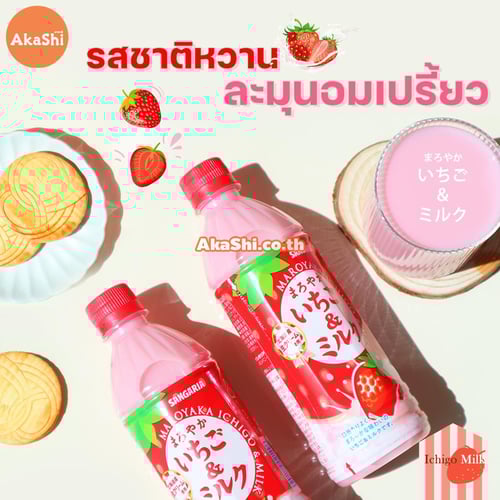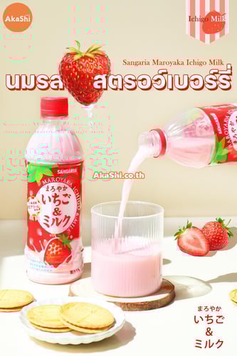 น้ำสตรอว์เบอร์รี่ผสมนม กลิ่นหอม สดชื่น บรรจุลงขวด ด้วยกรรมวิธีปลอดเชื้อ น้ำสตรอว์เบอร์รี่ ผสมครีมนมจากฮอกไกโด