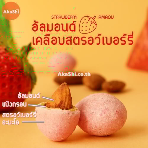 ชื่อสินค้า : อะมะโอ สตรอว์เบอร์รี่ อัลมอนด์ (อัลมอนด์เคลือบรสสตรอว์เบอร์รี่ อะมะโอ ตรา เซนนาริโด) - AMAOU STRAWBERRY ALMOND (SENNARIDO BRAND)
