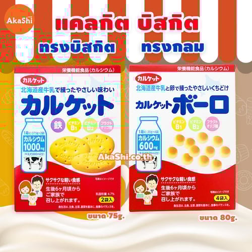 Calcuits - แคลกิต บิสกิตแคลเซียม ทรงบิสกิต แคลเซียม 1,000 มิลลิกรัม รสนมฮอกไกโด บิสกิตแคลเซียมสูง เหมาะสำหรับเด็กที่มีอายุ 6 เดือนขึ้นไป ใน 1 กล่อง อุดมไปด้วยแคลเซียมสูงถึง 1,000 มิลลิกรัม เทียบเท่ากับการทานนมถึง 5 แก้ว (880 มล.) และยังอุดมไปด้วย ธาตุเหล็ก วิตามิน B1, B2 ช่วยเสริมสร้างการเจริญเติบโตของร่ายกาย ช่วยให้กระดูกและฟันแข็งแรง
