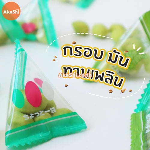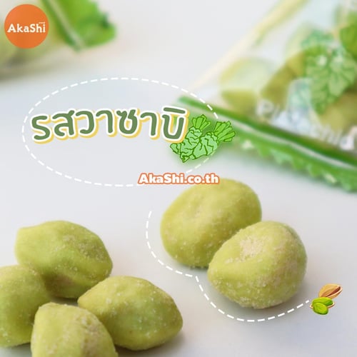 Sennarido Green Snack Pistachios ถั่วพิสตาชิโอญี่ปุ่นเคลือบแป้งอบกรอบ รสวาซาบิ ขนมจะเป็นถั่วพิสตาชิโอที่เคลือบด้วยแป้งอบกรอบ อร่อย กรอบ เคี้ยวเพลิน มีประโยชน์ต่อร่างกาย บรรจุใส่ถุงเล็กทรงสามเหลี่ยมประมาณ 6-7 เม็ด ง่ายต่อการพกพา แบ่งกินสะดวก เหมาะกับนำมาทานเล่นเป็นของว่าง หรือทานคู่กับเครื่องดื่มต่างๆ ก็เข้ากันได้เป็นอย่างดี