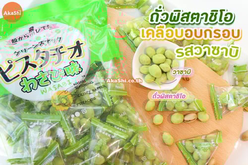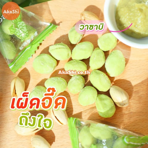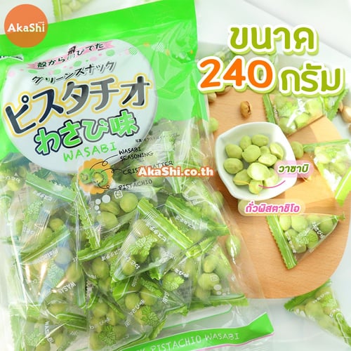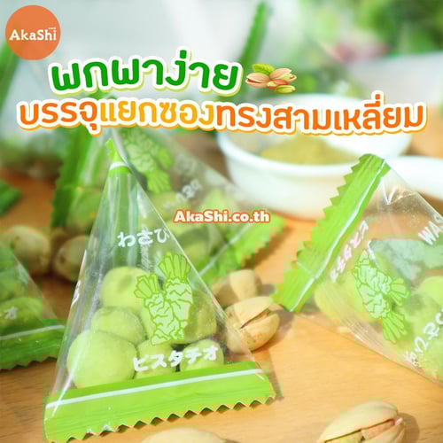 Sennarido Green Snack Pistachios ถั่วพิสตาชิโอญี่ปุ่นเคลือบแป้งอบกรอบ รสวาซาบิ ขนมจะเป็นถั่วพิสตาชิโอที่เคลือบด้วยแป้งอบกรอบ อร่อย กรอบ เคี้ยวเพลิน มีประโยชน์ต่อร่างกาย บรรจุใส่ถุงเล็กทรงสามเหลี่ยมประมาณ 6-7 เม็ด ง่ายต่อการพกพา แบ่งกินสะดวก เหมาะกับนำมาทานเล่นเป็นของว่าง หรือทานคู่กับเครื่องดื่มต่างๆ ก็เข้ากันได้เป็นอย่างดี