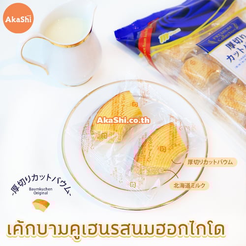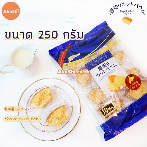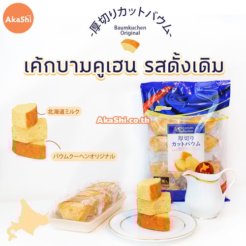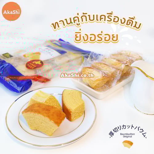 Marukin Cut Baumkuchen Original - เค้กบามคูเฮน รสดั้งเดิม เค้กบามคูเฮน เค้กบัม หรือเค้กขอนไม้ เป็นชื่อเรียกของเค้กชนิดนี้ เค้กที่ได้ขึ้นชื่อว่าเป็นราชาแห่งเค้ก เนื่องด้วยกรรมวิธีการทำเค้ก ที่ต้องใช้ฝีมือและความอดทนสูง มีความละเอียดอ่อนและความพิถีพิถันในการทำ ทำให้ได้เนื้อเค้กที่แน่น และนุ่ม อร่อย นำมาตัดครึ่งเพื่อให้สะดวกต่อการทาน จะทานเล่น หรือทานคู่กับชา กาแฟ ก็อร่อย