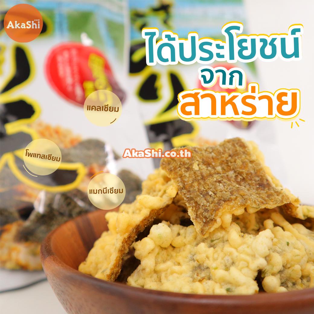 Yamaei Sakusaku Noriten Fried Seaweed Salt - สาหร่ายทอดกรอบ รสเกลือ สาหร่ายโนริหรือสาหร่ายทะเลญี่ปุ่น เป็นสาหร่ายทะเลแห้งที่นิยมใช้เป็นวัถุดิบในอาหารญี่ปุ่น มีสีเขียวเข้มจนถึงดำ นำมาคลุกด้วยแป้งเทมปุระ ทอดจนกรอบ ได้คุณประโยชน์จากสาหร่ายทะเลเต็มๆ ทั้งแคลเซียม แมกนีเซียม โพแทสเซียม ธาตุเหล็ก และใยอาหาร ทานได้ทั้งเด็กและผู้ใหญ่ กรอบ อร่อย ทานเพลิน ทานได้ทุกที่ ทุกเวลา